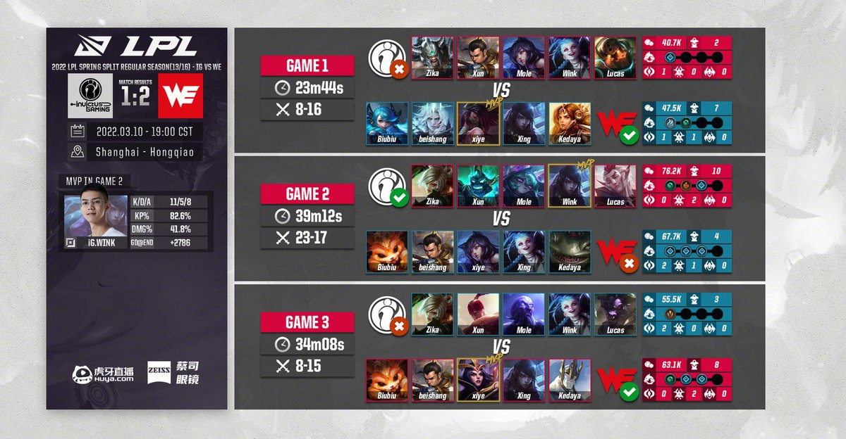 #LoL] - LPL Spring Split 1 - 2 vs@TeamWE We managed to push back in game 2 and take it all the way to 3 games but our performance just wasn't enough today. We will work hard to improve and come back stronger