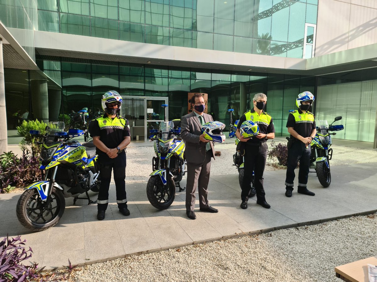 #PolicíaLocal significa invertir en equipación y seguridad. Es nuestra forma de reconocerles su trabajo. Hoy hemos presentado el nuevo casco con alta reflectancia para la Unidad Motorista de la Policía Local de#Sevilla.#Gobernación@Ayto_Sevillapic.twitter.com/xSm9v82Nft