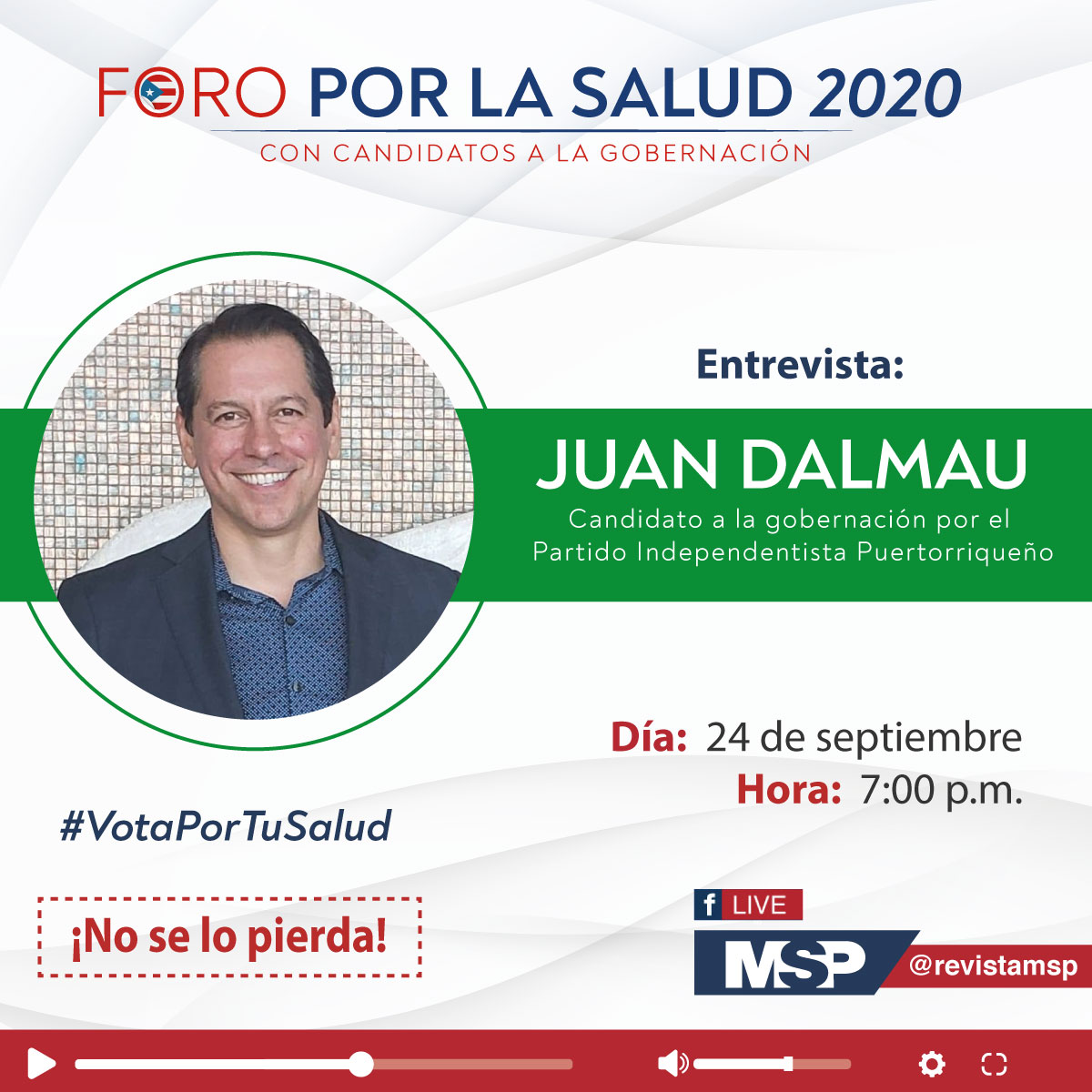 #CanalMSP | No se pierda la entrevista al candidato a la#gobernación del Partido Independentista Puertorriqueño y sus propuestas para el área de#salud, inspiradas en el sistema del Dr. Arbona Lago. Info: http://ow.ly/wIuU50BvbO4#ExclusivoMSP#VotaPorTuSalud#ForoPorLaSalud2020pic.twitter.com/yEBkCIej6E