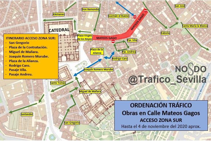 en calle Mateos Gago por obras desde el 4 de mayo. Primera fase 4 meses aprox. Atentos a la señalización. @EmergenciasSev@Ayto_Sevilla#SevillaHoy#TDSActualidad#Gobernacion pic.twitter.com/OeIBrdw3My