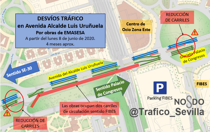 Palacio de Congresos. 4 meses aprox. Atentos a la señalización. Utilice itinerarios alternativos. @EmergenciasSev@Ayto_Sevilla#SevillaHoy#Gobernacion#TraficoSevillapic.twitter.com/st7DXPjBZ6