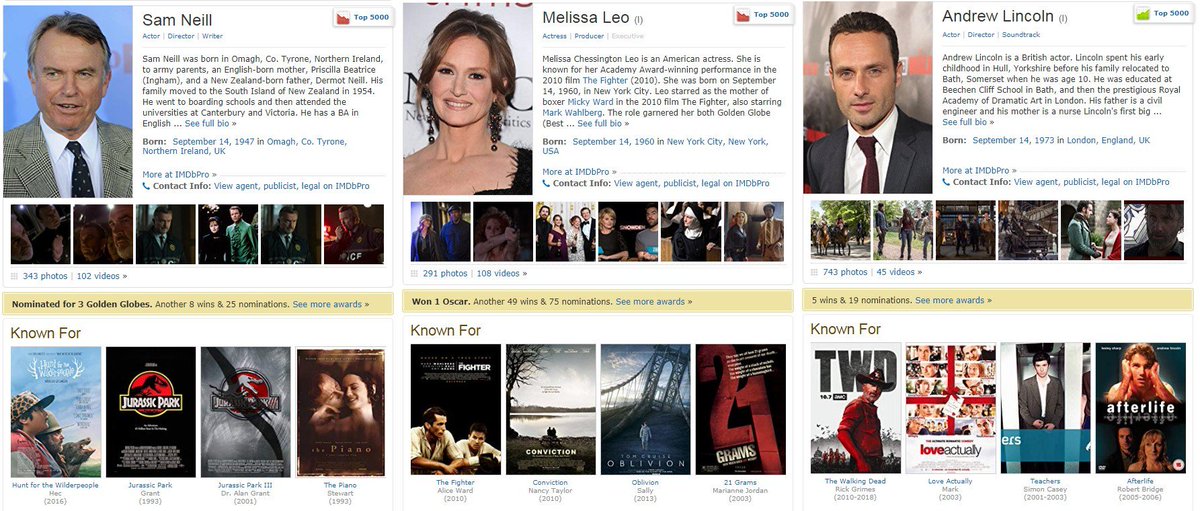 #UnDiaComoHoy nacieron -Sam Neill. Nominado#GoldenGlobes como Actor por serie TV "Reilly: Ace of Spies", "One Against the Wind " y miniserie TV "Merlin" -Melissa Leo.#Oscars 2011 a Mejor Actriz de Reparto por "The Fighter". -Andrew Lincoln. Serie TV "The Walking Dead".pic.twitter.com/rYamZfhCFD
