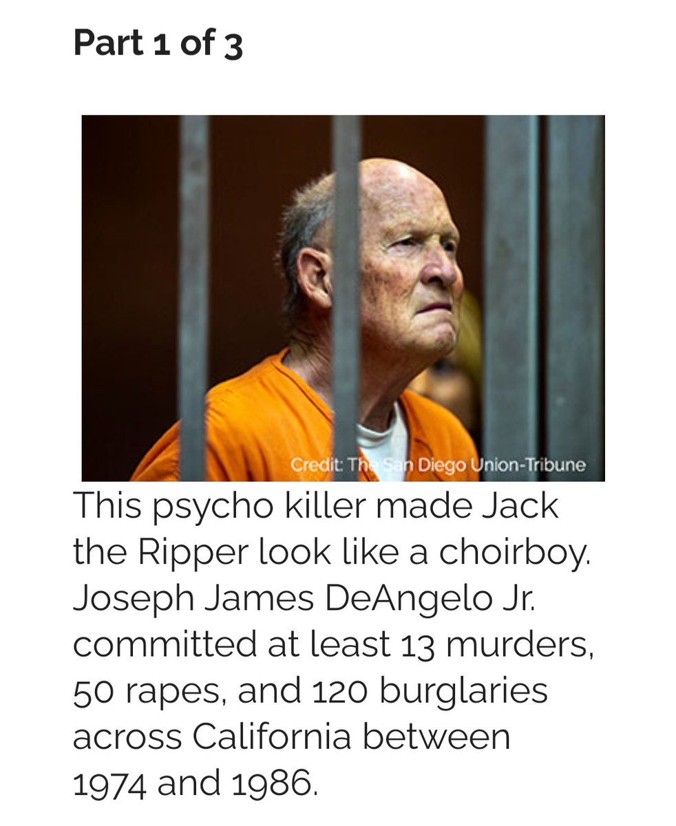 #GoldenStateKiller,#EastAreaRapist#OriginalNightStalker (whatever moniker people gave that piece of shit), was apprehended & unmasked as#JosephDeangelo Can't believe it's been 3 yrs pic.twitter.com/77pLI63Wih
