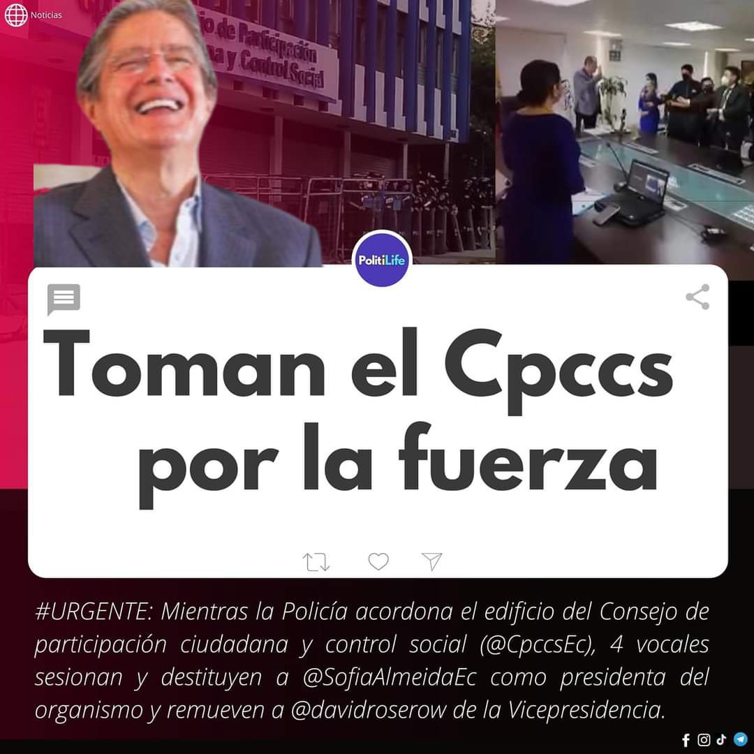 #GolpeDeEstado institucional, al tomarse por asalto el#CPCCS y la Corte Constitucional. No se veía tanta injerencia desde el Gobierno de Febres Cordero. -