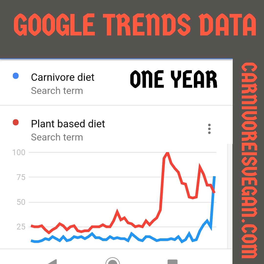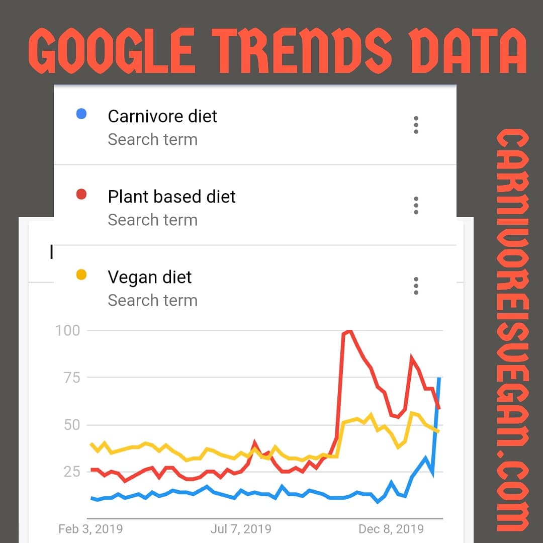 #googletrends for the relevant#vegandiet vs#carnivorediet search term comparisons, and despite all the media hype and headlines saying to#govegan