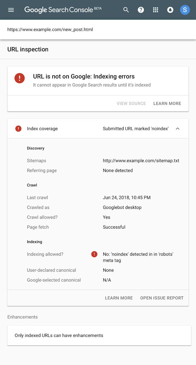Google URL Inspection tool provides detailed crawl, index, and serving information about your pages, directly from the Google index, It will become available to all users in the up-coming weeks.