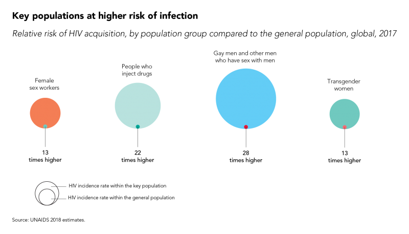 #Graphoftheweek | Key populations are being left behind. Approximately 47% of new HIV infections globally in 2017 were among key populations and their sexual partners. http://bit.ly/2JW5Cf0 pic.twitter.com/FDoYktJ9KC