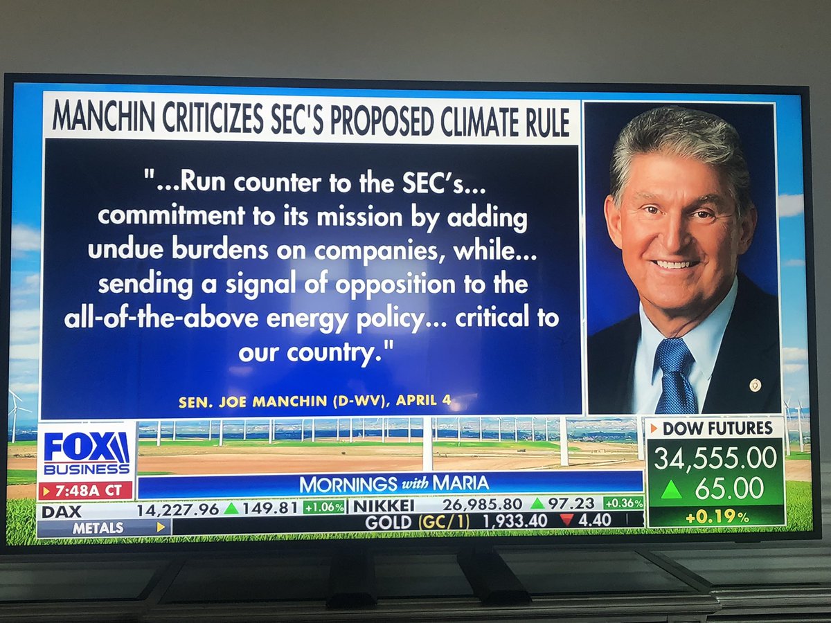 @Sen_JoeManchin again with a win. He stood up to the radical climate agenda at@FERC by chair@RichGlickFERC and now the climate nonsense at@SECGov. Biden is using the bureaucracy to push#GreenNewDeal and at least Manchin is pushing back. pic.twitter.com/2rHM5aNTBu