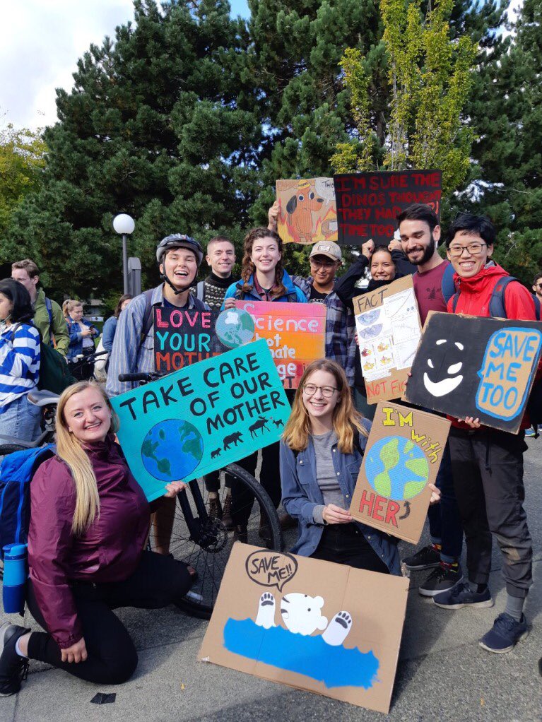 #ClimateStrike with my fellow@UVicENVI grad students. These intelligent, determined, passionate scientists are part of the solution - and they make great signs too!#ClimateAction#FridaysforFuture#greveclimat pic.twitter.com/gnKJylXPeN