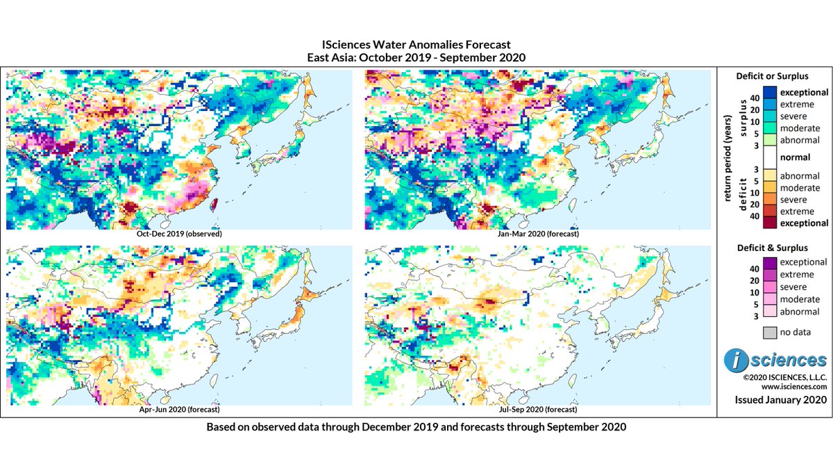 #Water forecast thru Mar 2020 for East Asia. Surplus:#YellowRiverBasin#Guizhou#Hunan#Guangxi (E)#Guangdong (N)#Jiangxi (S)#Fujian (W)#Shanghai. Deficit:#Yunnan (S)#HongKong#Henan (E)#Shandong#Mongolia#Pyongyang. http://ow.ly/5LD150y7avX pic.twitter.com/wc3AUnVKfJ