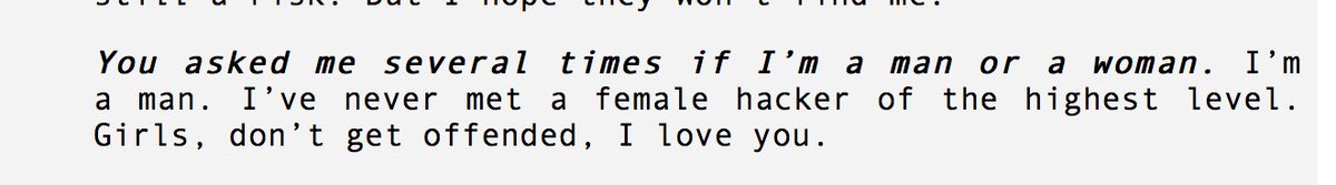 @Mod_Russia disagrees with you. Women of the FSB! in America the@CIA will ask you to stand up for your country, not lie down for it. Defect!#Guccifer2#Россия "I’m a man. I’ve never met a female hacker of the highest level. Girls, don’t get offended, I love you"pic.twitter.com/4Q4WYrxEZL