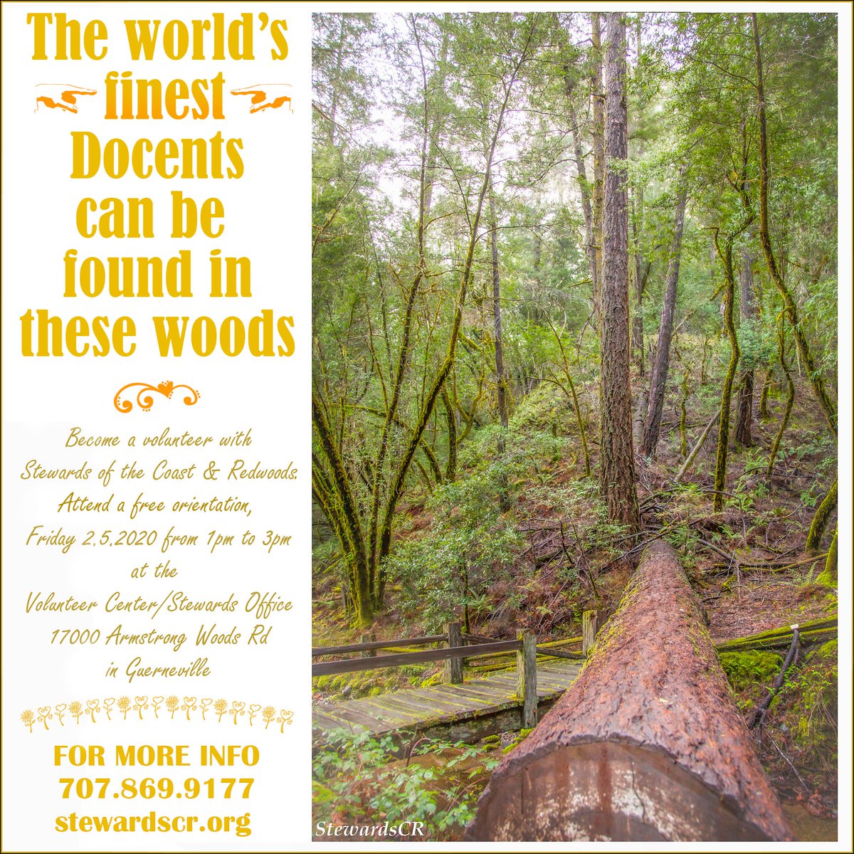 #docent training! Super great way to meet people, and hang out in an absolutely stunning forest! Stewards of the Coast & Redwoods. Meet at the Stewards/Volunteer Office. 17000 Armstrong Woods Road,#Guerneville, CA 95448. 707-869-9177#volunteerpic.twitter.com/SgWUprCpYR