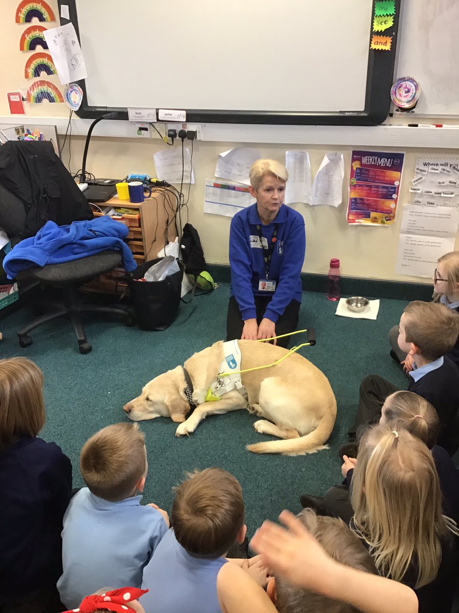 As part of our disability awareness project in PSHE we are learning about visual impairment. A huge thank you to Wendy and Upton for coming into school today and teaching us lots of facts about guide dogs!