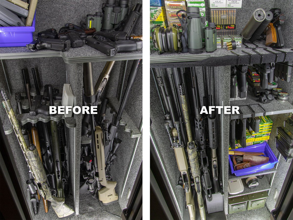 Check out these before & after pics! Hello side shelving... You were missed! Rifle Rods, Handgun Hangers and MagMinders FTW.