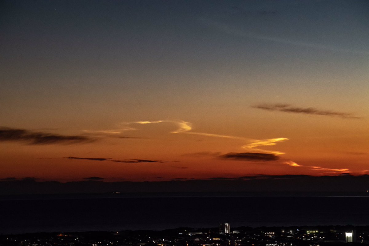 #H2Aロケット 発射によってできた#夜光雲 を、#タイムラプス で! 17:20~約30分を20秒にまとめました。 眼下にきらめくのは沼津の夜景と、駿河湾内を行き来する船の明かりです。pic.twitter.com/4VKSxIcDEW -