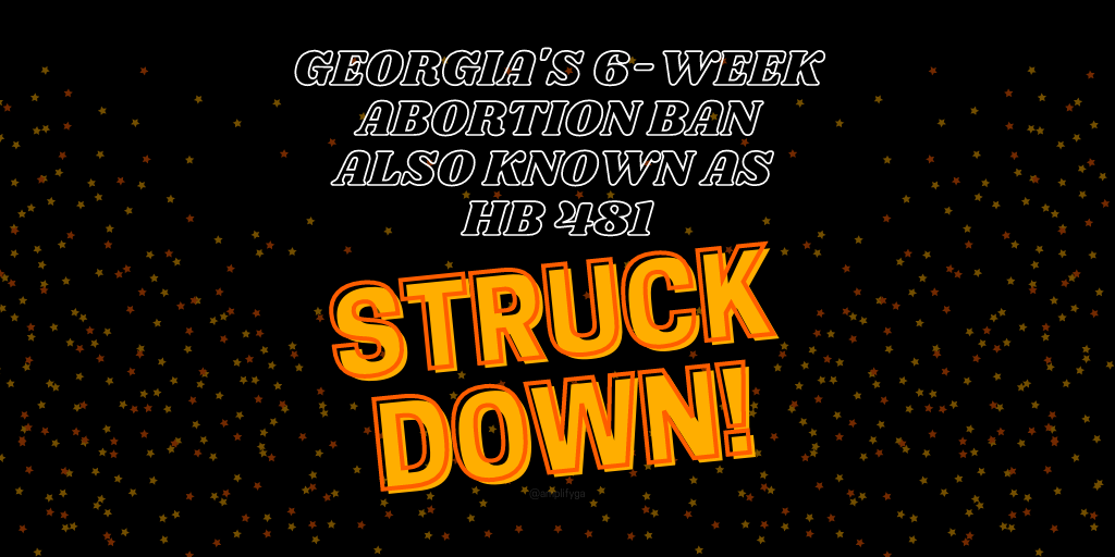 #GEORGIA! The judge ruled the 6-week abortion ban AKA#HB481 as UNCONSTITUTIONAL. Nice try anti-abortion lawmakers, but abortion is a RIGHT, and you can't take that away from us#PissedOffPeaches!#AbortionIsOk pic.twitter.com/sXD0W0QtVy