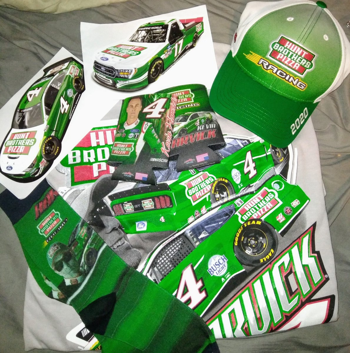 @hbpRacing for this awesome#HBPracing prize pack. Josh done stole my socks, the diecast is displayed & I have an extra koozie for when@TALKNER comes over to cheer on Harvick. Now if I could just find some@hbpizza in Hampton https://twitter.com/hbpRacing/status/1304960957647593473 …pic.twitter.com/5NX7XlSz3D