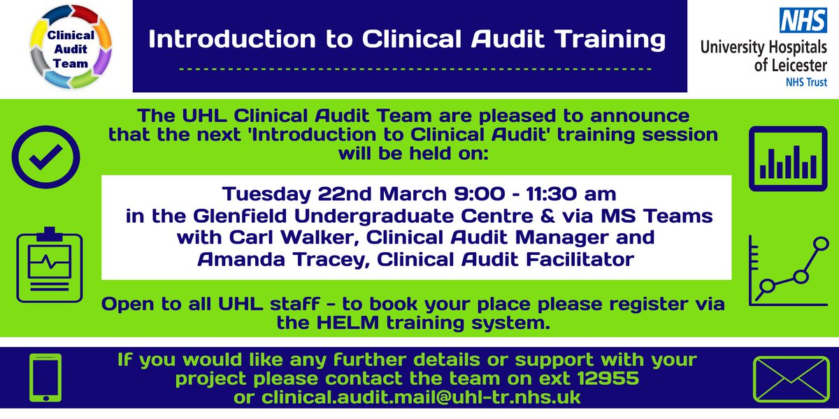 @Leic_hospital introduction to#clinicalaudit training session on 22/3 with@brommers78 and myself. Open to all#teamUHL colleagues. Book your place via#HELM@LearningUHL1. Hope to see you there