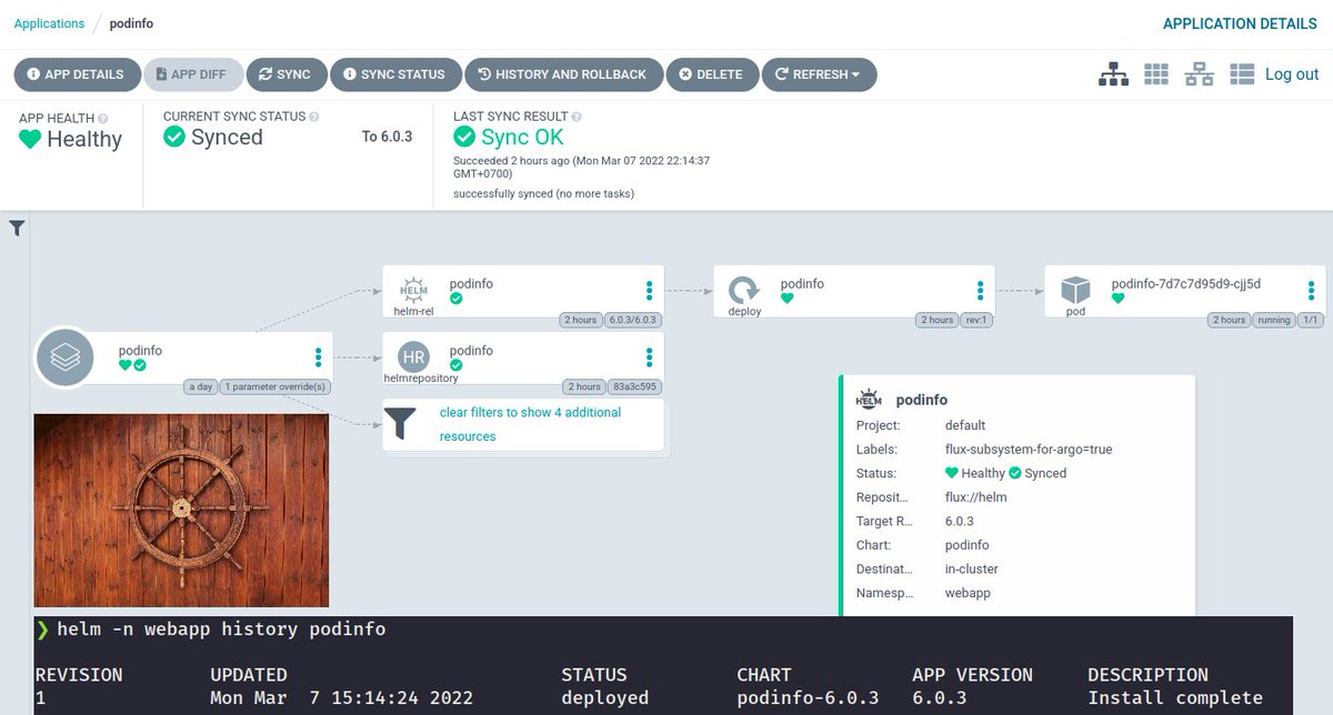 #ArgoCD offers very good UI in#GitOps space. But it's known to NOT be very nice w/#Helm installation and upgrading. Here's problem solved. Helm you're seeing is a real "Helm Release". The Flux Subsystem for Argo brings this best#Flux feature to your UI https://bit.ly/flux-subsystem-argo …pic.twitter.com/SY0FKnKXgK