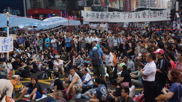 It's hot in mongkok as sun shines on protesters who peacefully sit down on nathan road