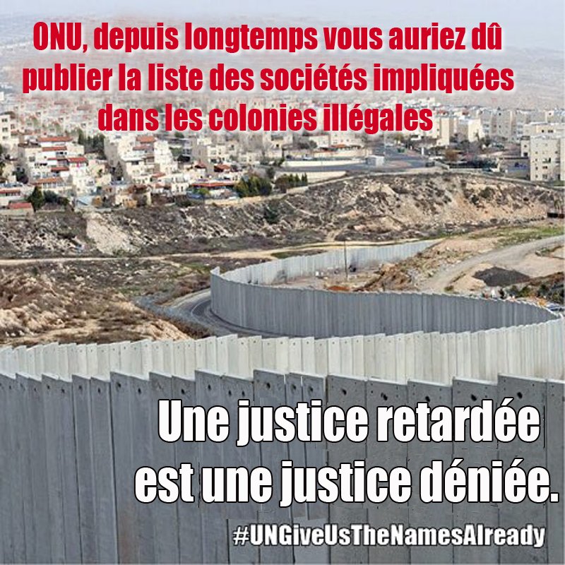 #HRC40 Alors que le Conseil des droits de l'Homme se termine demain, la base de données des entreprises impliquées dans les colonies israéliennes attendue depuis 2ans n'a toujours pas été publiée@mbachelet il est temps, justice retardée=justice reniée !