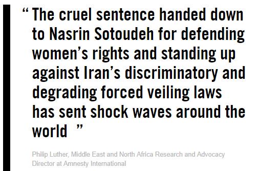 Her continued detention has exposed the depths of the Iran'ian authorities’ repression on an international stage. Today we are sending them a clear message: the world is watching and our campaign will continue until Nasrin Sotoudeh is free.”