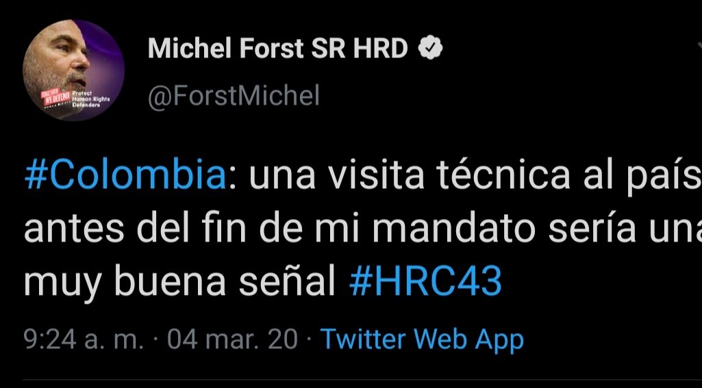 #Colombia: una visita técnica al país antes del fin de mi mandato sería una muy buena señal#HRC43 pic.twitter.com/ciPf5nppR7
