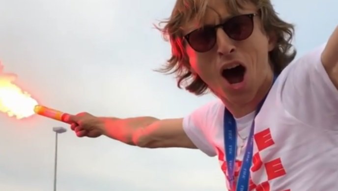 @lukamodric10 oduševljen dočekom zapalio bengalku, sve snimio Vedran Ćorluka#Vatreni#WorldCup#HRTsp2018 VIDEO > http://bit.ly/2KYSK86 pic.twitter.com/KKCmRH0BlM