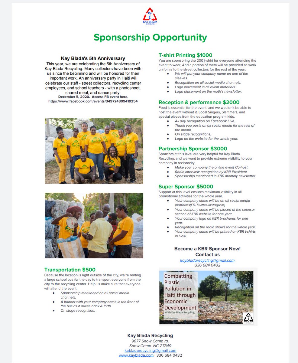 . 5 years of #Environmental work in#Haiti. Your help is urgently needed. Become a KBR sponsor today. http://www.kayblada.com pic.twitter.com/4mXgI2bB4g