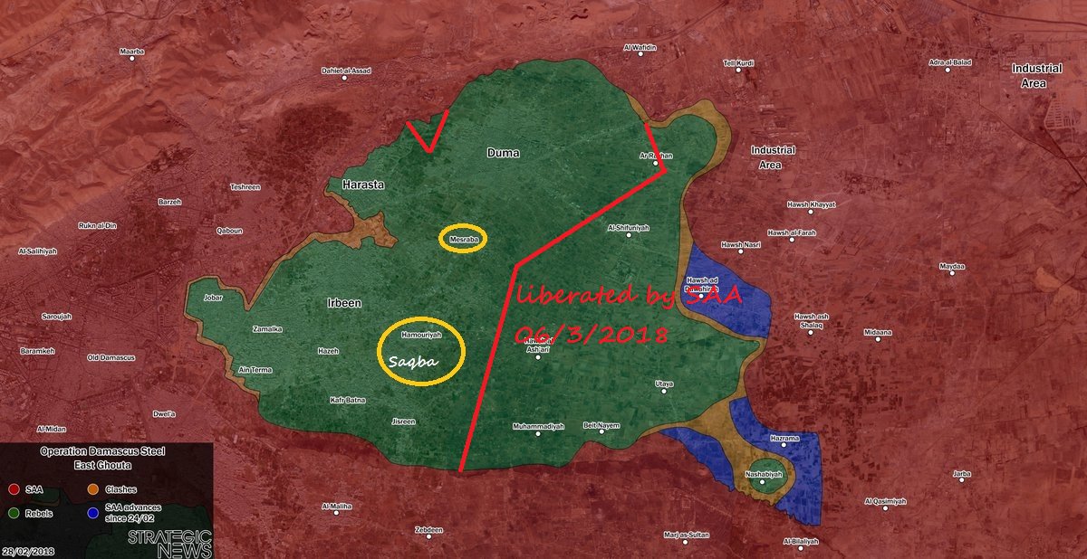 #East_Ghouta approx. localisations of#Hammouriyeh#Mesraba &#Saqba (and approx. line of front, east of red line = SAA liberated, fighting ongoing in#Reyhan)#Syria#SyMappic.twitter.com/1KV3uH6Uir