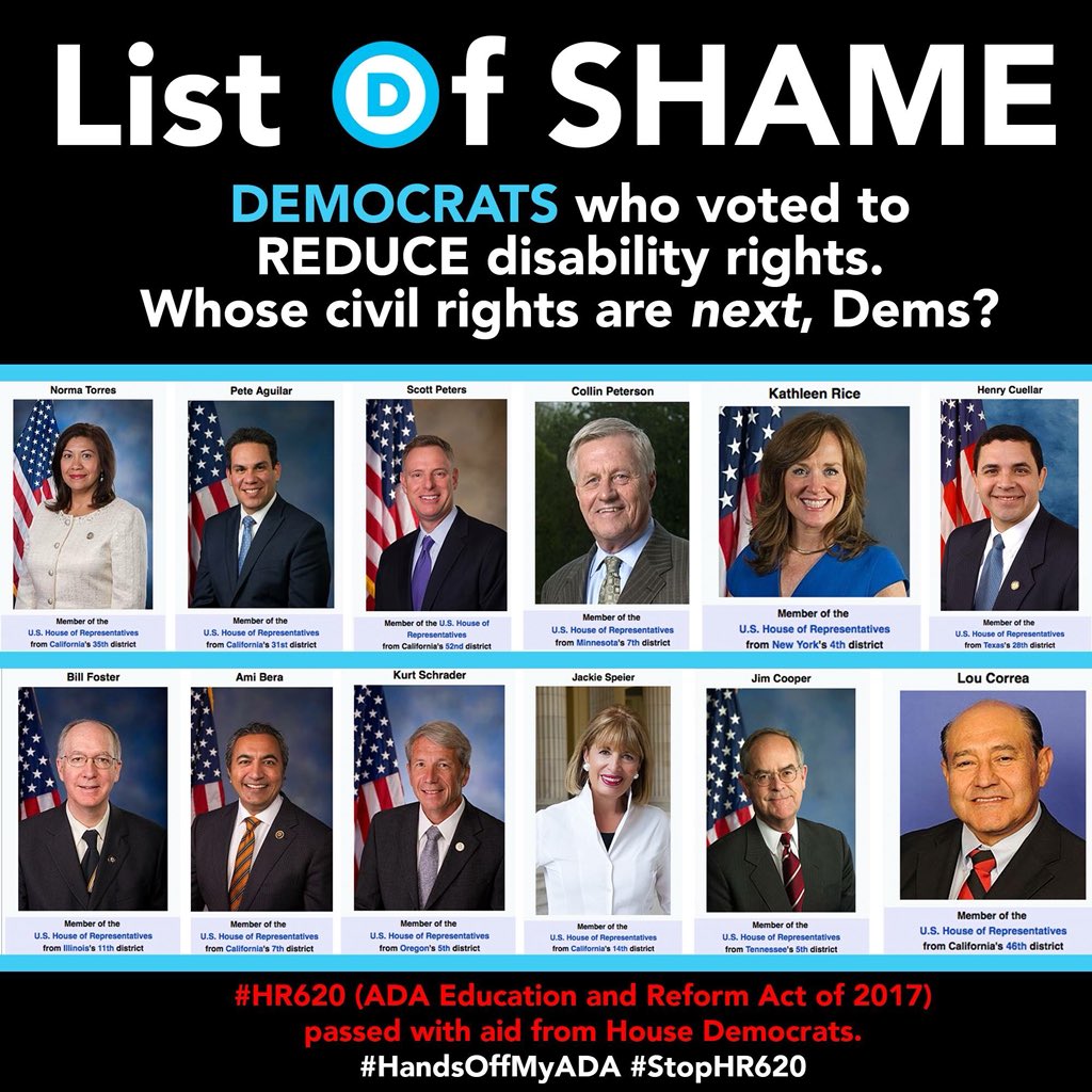 need to rain down on the 12 Democrats who just shamefully voted to gut the ADA
