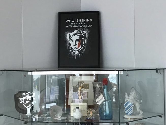 #Handziuk, post mortem,at the Ukrainian ID forum in#Kaniv. Kateryna was fighting against corruption; but her opponents stopped her- she died, after a savage acid attack. We call for reforming laws that would put the end to violence against women.pic.twitter.com/44FTLPDXvn