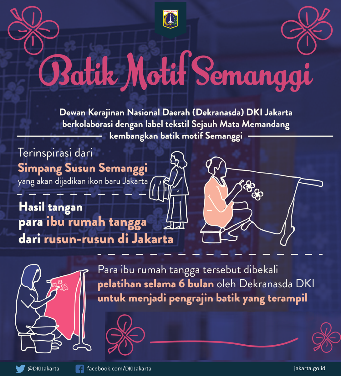 Dekranasda Jakarta berkolaborasi dengan Sejauh Mata Memandang mengembangkan batik motif Semanggi.