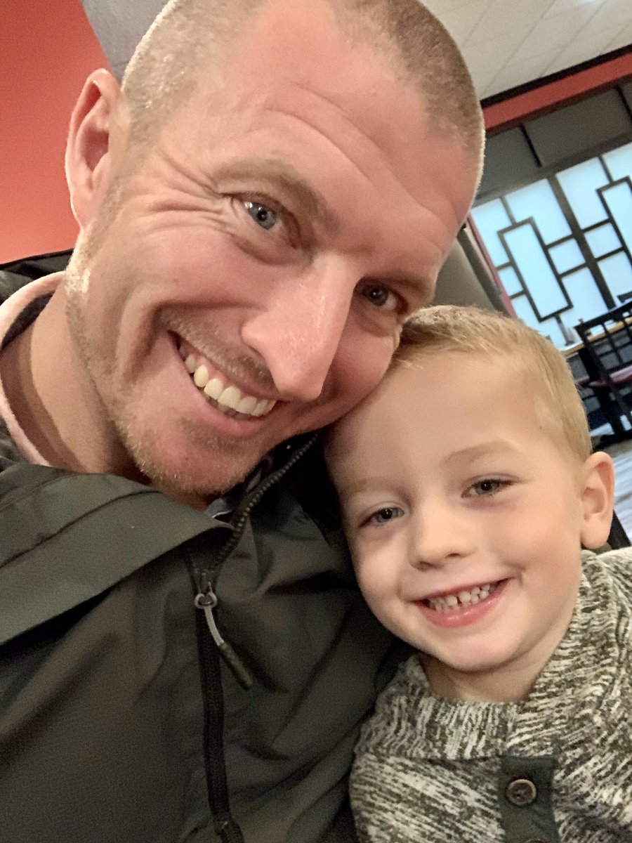 We started the night a little grouchy, but ended with family dinner and a smile. Love this little guy