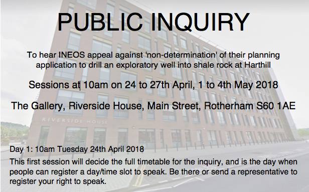 #Harthill#fracking inquiry: "The development is supported by government energy policy," says#INEOS rep. But not the public.#IneosOuteos was the chant outside.pic.twitter.com/9EiZlR0I9r