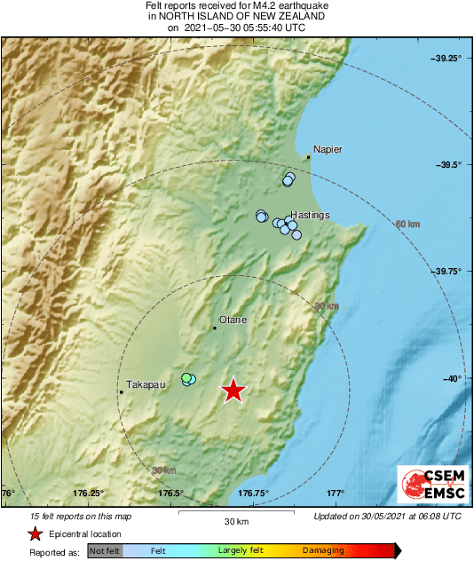 #earthquake strikes 46 km S of#Hastings (New Zealand) 13 min ago. Effects reported by eyewitnesses: pic.twitter.com/HOVnNNFDo1