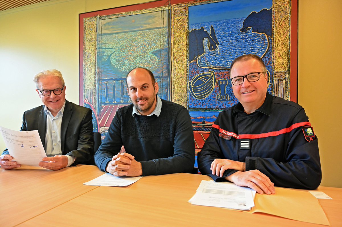 Renouvellement d'une #convention de disponibilité d'un salarié d'#Alcéane, bailleur social au#Havre. Le sapeur Jérôme est également sapeur-pompier volontaire au Havre Nord. Merci à lui tous pour son#engagement au service de la population ainsi qu'à notre partenaire Alcéanepic.twitter.com/k14WYH3gnq