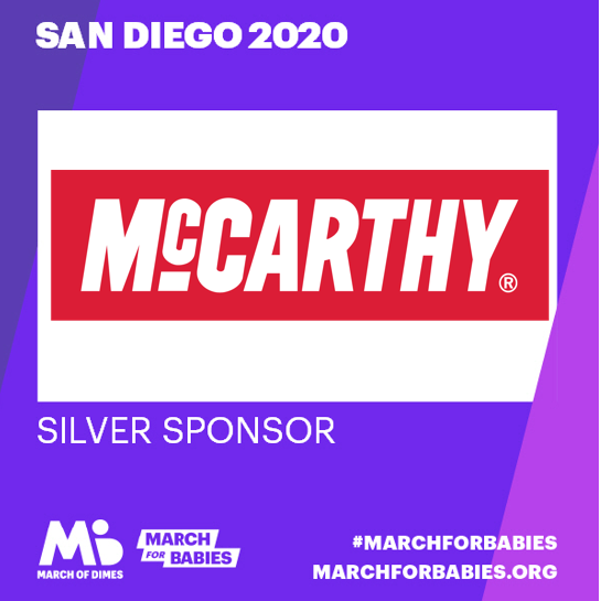 @mccarthybuild as a Silver Sponsor for the 2020 San Diego March for Babies! Thank you McCarthy! Join us on April 25th: https://bit.ly/2sL1iUc#MarchforBabies#SanDiego#McCarthy#McCarthyBuildingCompanies#HealthyMoms#StrongBabiespic.twitter.com/QeRrW5ghm9