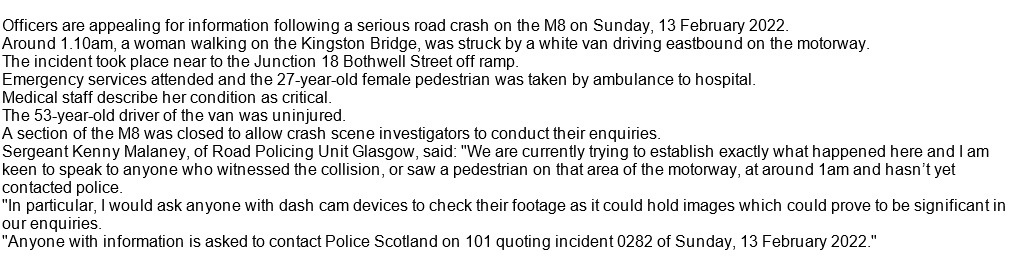 Teenage girl seriously ill after being hit by a car in Uddingston