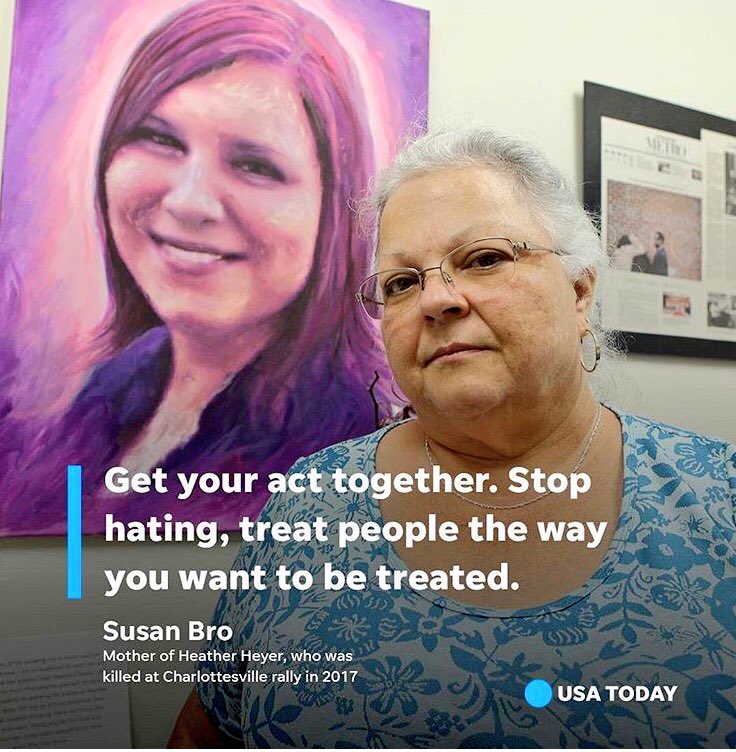 #HeatherHeyer. She lost her life a year ago protesting against racism in Charlottesville. Praying for her family and know that she will remain a symbol for those of us in the world who promote love over hate pic.twitter.com/BoxZwRHeeK