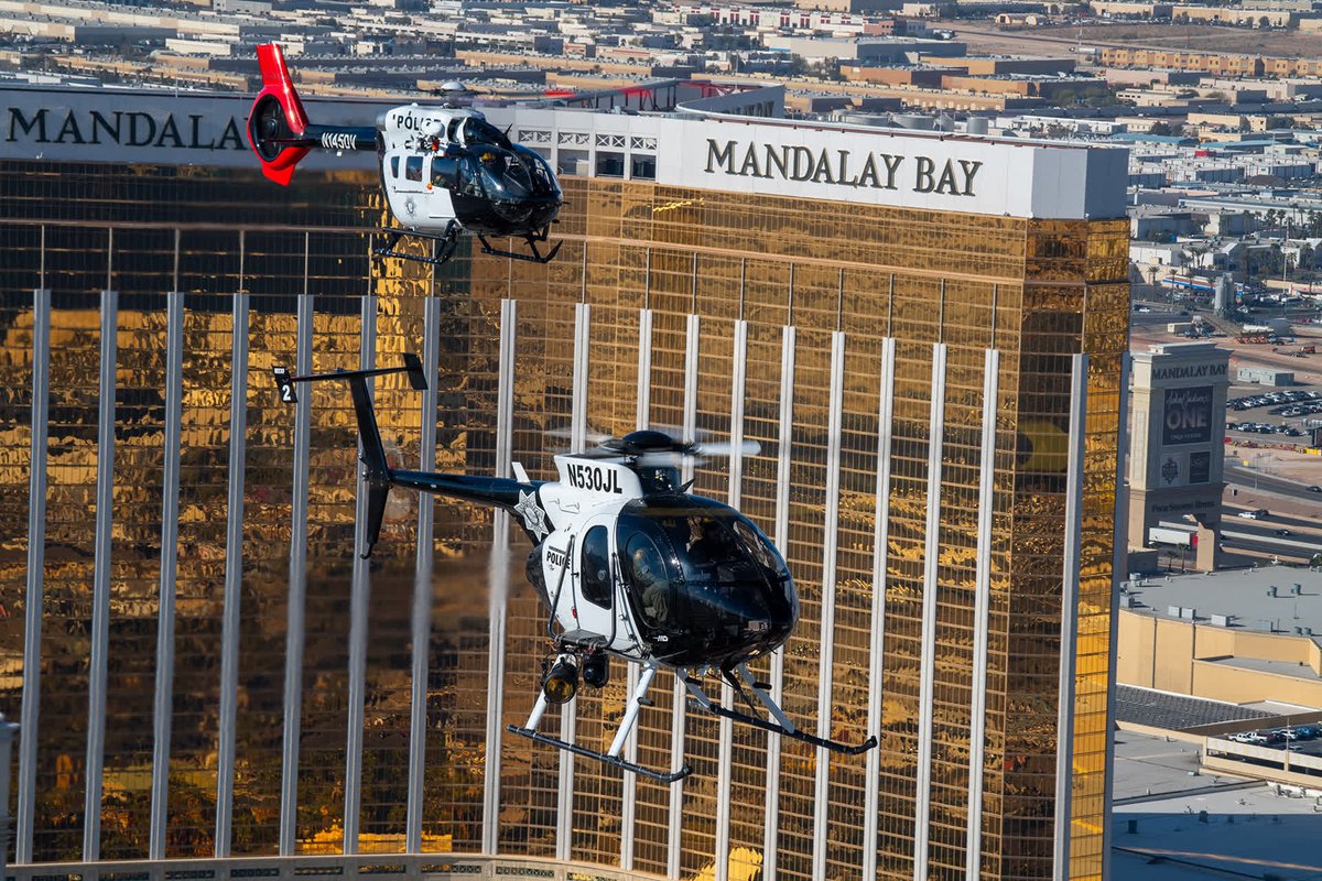 @mdhelicopters 530F and an @airbus_helicopters H145 of the Las Vegas Metro Police in front of the@mandalaybay resort in Las Vegas.#helicopter#police#airtoair#instahelicopterpic.twitter.com/bOSzb5kB9x