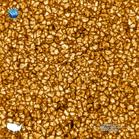 #Humility -- the finest image of our home star! For reference, 30km/convecting plasma granule in this photo w/the#UnitedStates for scale