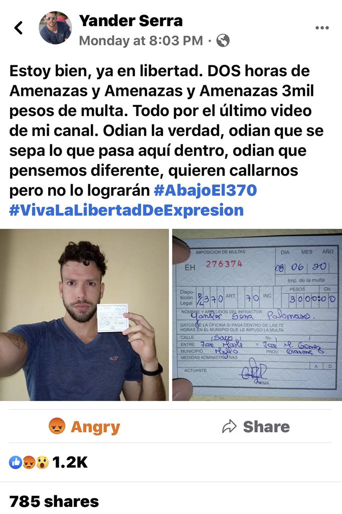 #Cuba has not FREEDOM of speach. This influencer received a $3000 fine for just a video.#Helpus4change@FGR_Cuba@EamonGilmore@EditaHrdaEU@Casareal@b_v_apeldoorn@Europarl_EN@charanzova@USEmbCuba@AAzoulay@LRSeimas@DiazCanelB@PresidenciaCubapic.twitter.com/awi2MUIFO7This media may contain sensitive material. Learn more