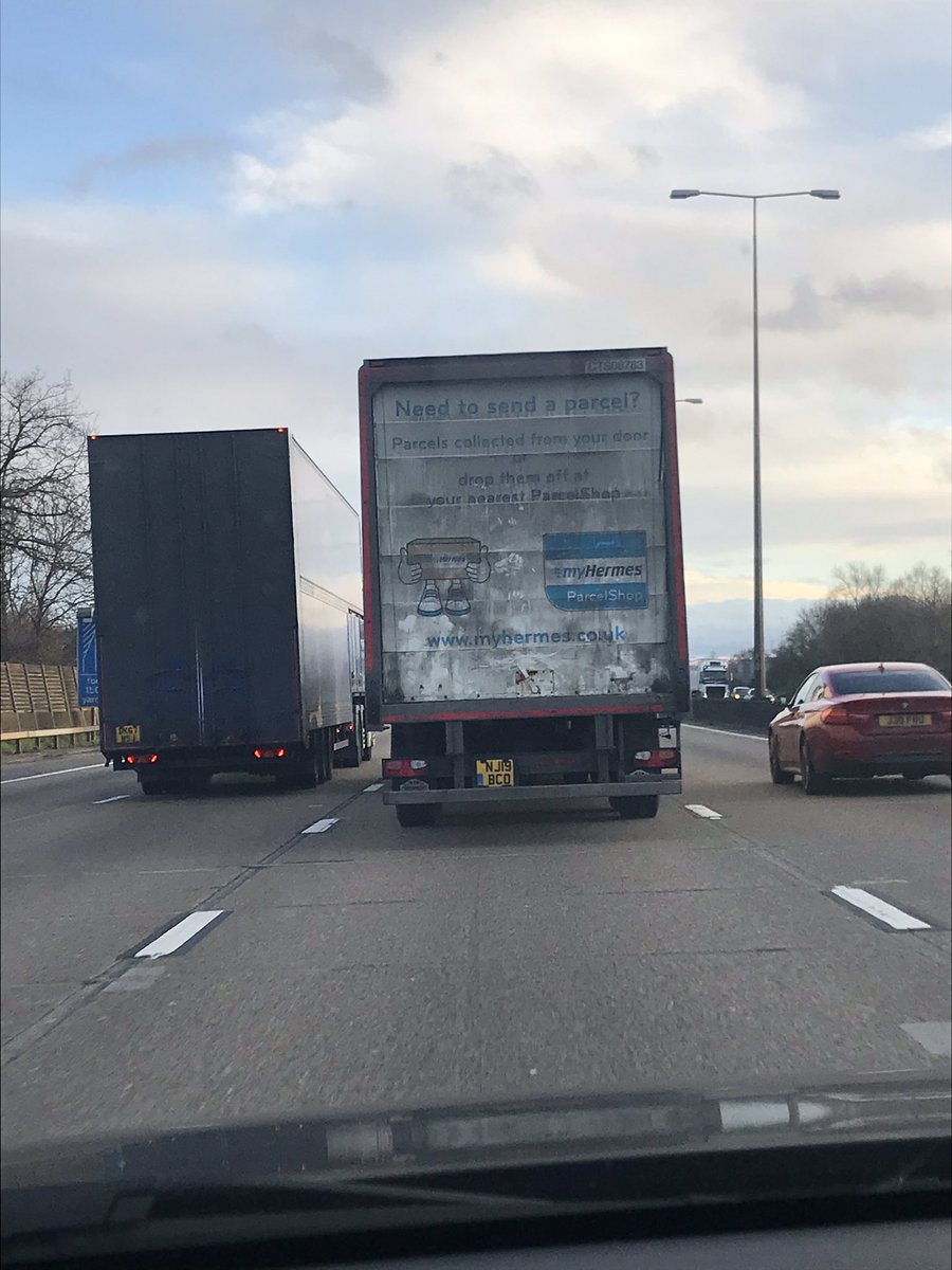 @Hermesparcels lorries are as terrible as the courier service themselves! Nearly took out the car and the three of us in it...#m25twat#hermes pic.twitter.com/THuNAZI5VF