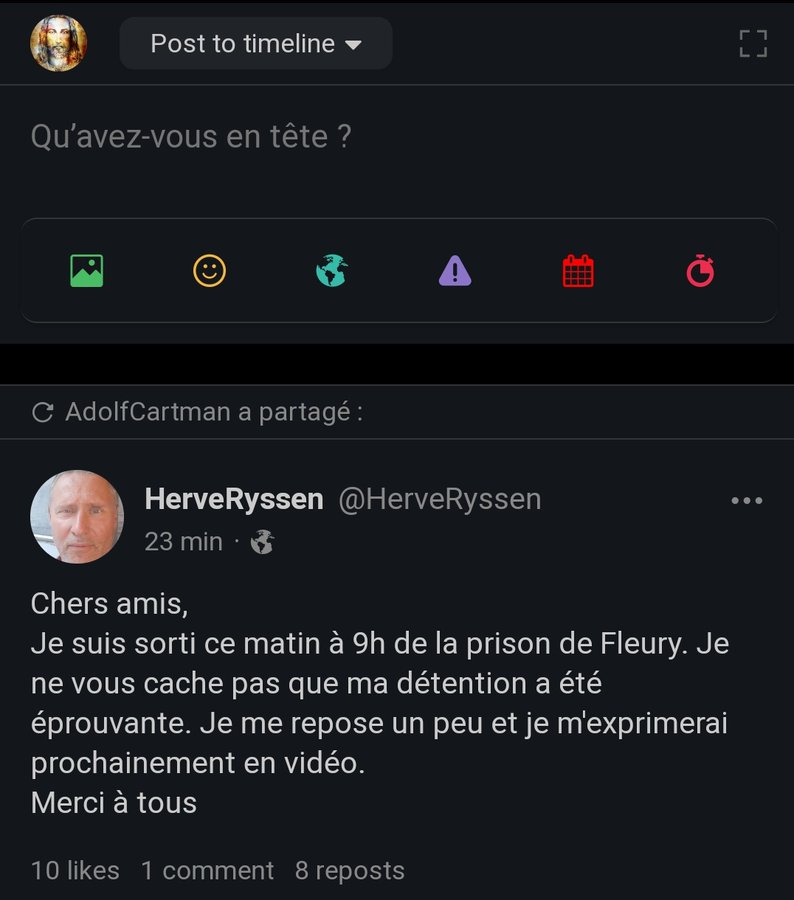#HervéRyssen, écrivain prolifique et grand patriote, enfermé pour des écrits.#LibérezRyssen ; Un État qui enferme des écrivains tout en relâchant des radicalisés islamistes n'est qu'un traître à la Patrie.pic.twitter.com/7buRuKkmmm