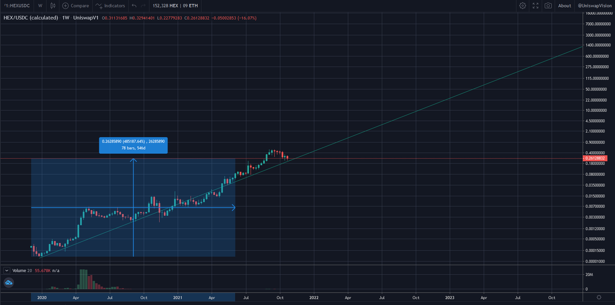 #Hex is to acquire T Shares representing consistent inflation rewards which are deflationary over time and correlated 1:1 with the price of#Hex. Makes sense to me that this has produced a chart that is exponential on the log scale... pic.twitter.com/7oVW8TxqSW