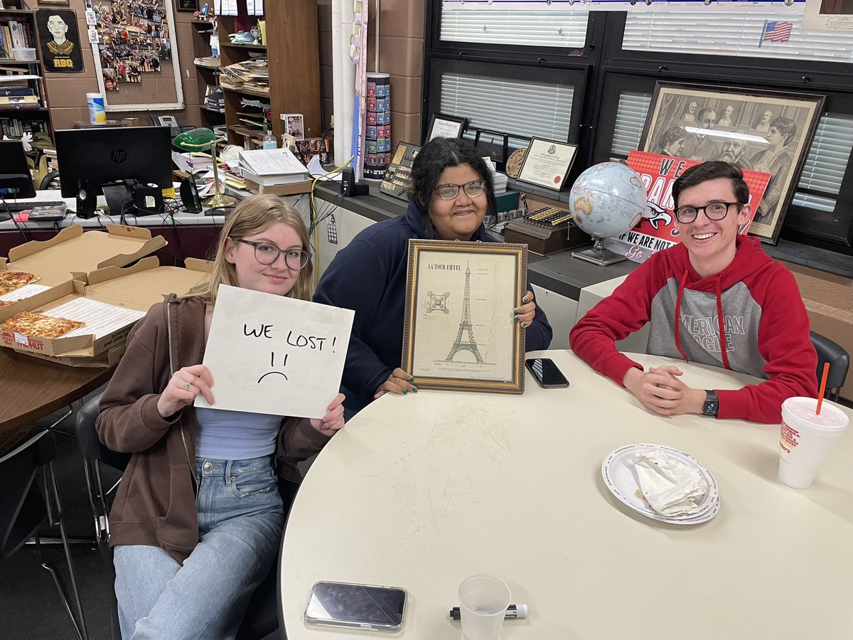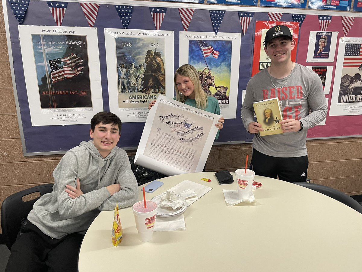 #FHSHistoryClub Trivia Night! Lots of great prizes, but the big win goes to the “Experiments”! In second- the “Schuyler Sisters”, followed by the “Aaron Burritos” and the “Bert the Hurricanes”! Here they are with prize drawings and the trophy!#HistoryMatters pic.twitter.com/OTpqroxFma