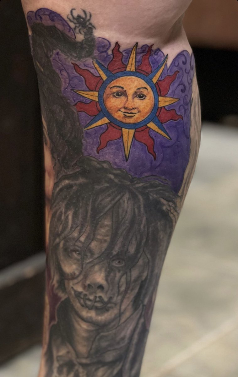here is my hocus pocus leg piece officially completed!!! so bittersweet that it’s finally done