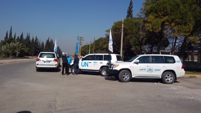 #Syria: For the 1st time since Sept a humanitarian interagency convoy w/ essential health & nutrition supplies has reached Talbiseh in#Homs pic.twitter.com/FYl3Uh7yZB