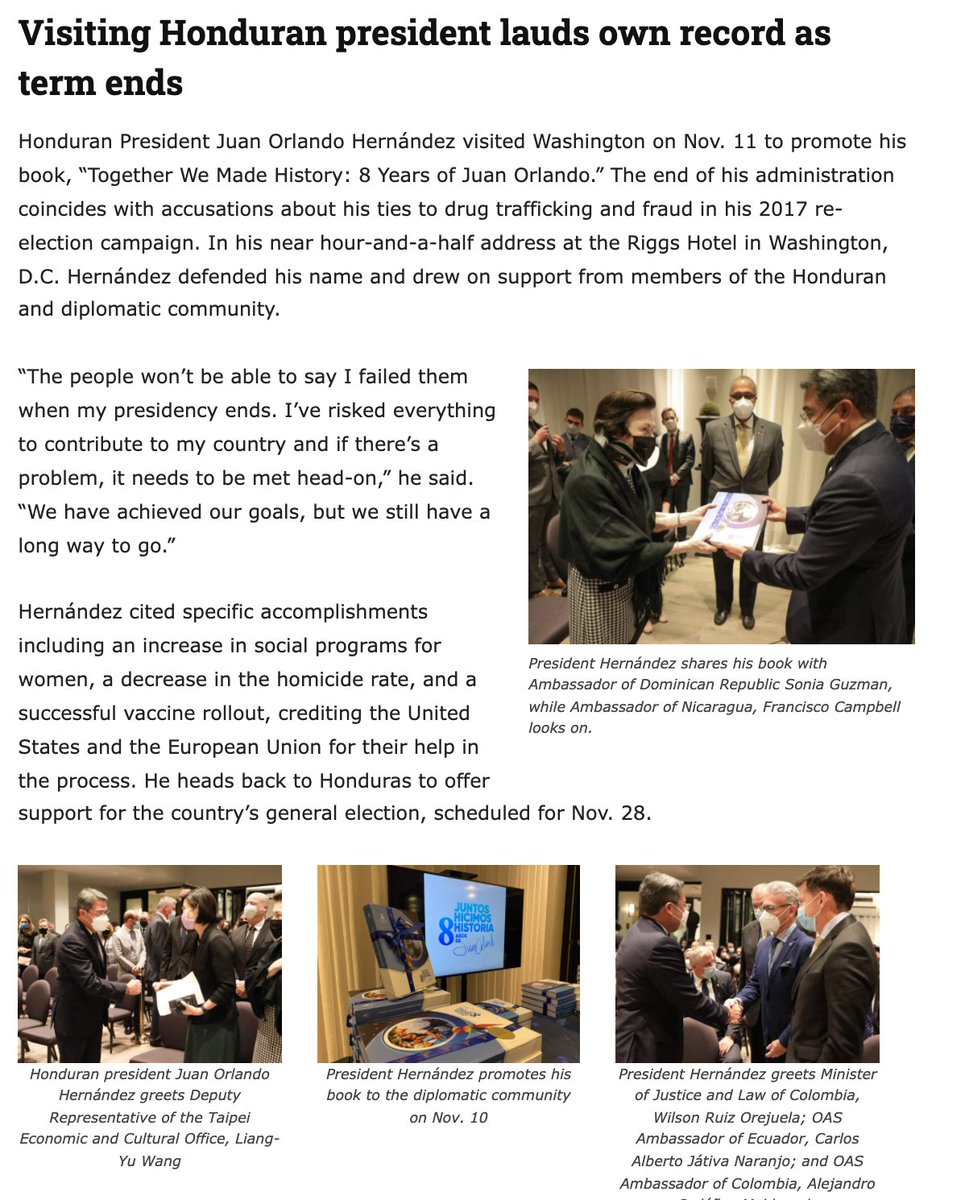 #Honduras: If Juan Orlando Hernández truly had his visa suspended in July 2021 - as@StateDept claims: 1. How did he travel to NY for the UN General Assembly in September? https://media.un.org/en/asset/k11/k110pg9d30 … 2. How did he travel to DC to present his book in November? https://www.prnewswire.com/news-releases/president-of-honduras-presents-the-achievements-of-his-administration-in-washington-dc-301422551.html …pic.twitter.com/De8ZAFjASb